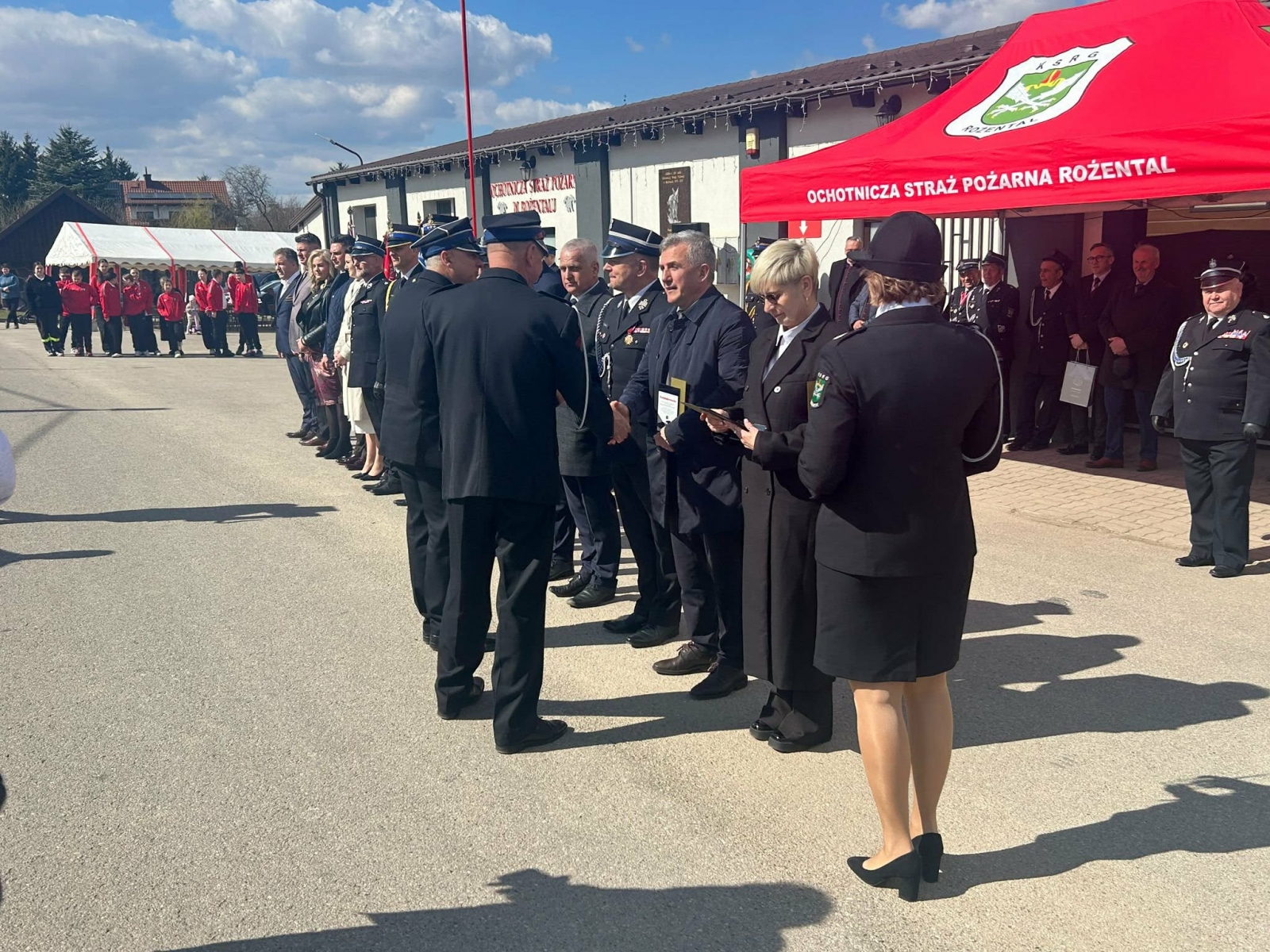 Dalsza część uroczystości odbyła się na placu przed remizą. Jednym z najważniejszych punktów programu było przekazanie dwóch nowych pojazdów. Do OSP Rożental trafił ciężki samochód ratowniczo-gaśniczy na podwoziu Scania oraz samochód rozpoznawczo-ratowniczy Ford Ranger. Nowy sprzęt ma wzmocnić zdolność jednostki do reagowania na zagrożenia i poprawić bezpieczeństwo mieszkańców.