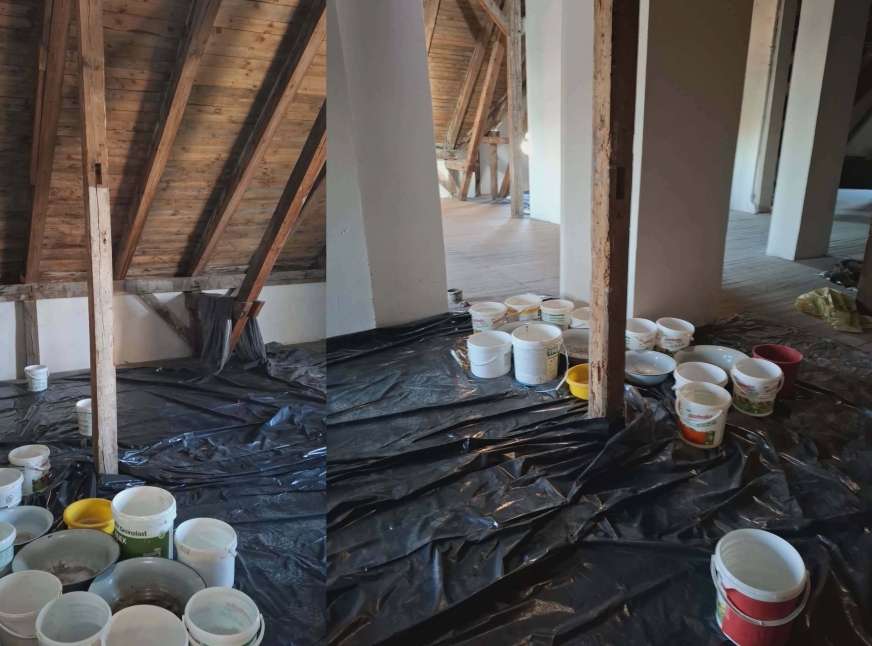 Jak informuje urząd, dotychczasowe działania miały charakter doraźny. Przecieki były na tyle uciążliwe, że na poddaszu ustawiano pojemniki na wodę, by ograniczyć skutki opadów.