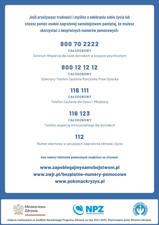 Myślałem, że sobie poradzę. Ale niestety, kiedyś nawet najtwardsza skała pęknie i się rozsypie na milion kawałków. Przemoc nie dzieje się na korytarzu szkolnym, chociaż i tam czasem jej doświadczyłem, tylko w łazience, szatni. Tam nie ma kamer ani nauczycieli. Ja potrzebowałem pomocy. Niestety nie otrzymałem jej od nikogo. W szkole czułem się bezpiecznie tylko na lekcjach, ale jak zadzwonił dzwonek, miałem już obawy, co mnie spotka na przerwie. Ja już nie płaczę. Nie czuję bólu ani strachu. Jestem bezpieczny. Są ze mną moi dziadkowie [...]. Tylko oni z góry widzieli, jak cierpię i zabrali mnie do siebie. Mam nadzieję, że to moje krótkie życie i ta moja tragiczna śmierć zmieni społeczność na lepsze.