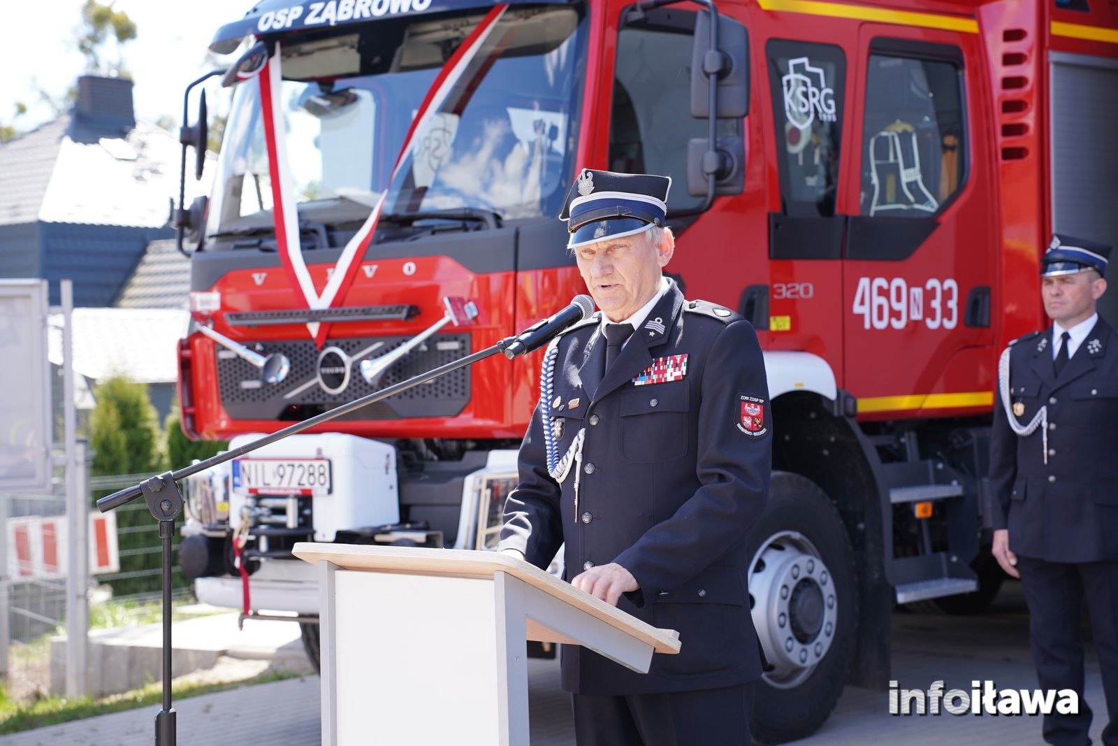 Nowy średni samochód ratowniczo-gaśniczy już oficjalnie na wyposażeniu jednostki OSP w Ząbrowie w gminie Iława. (Fot. Info Iława.)