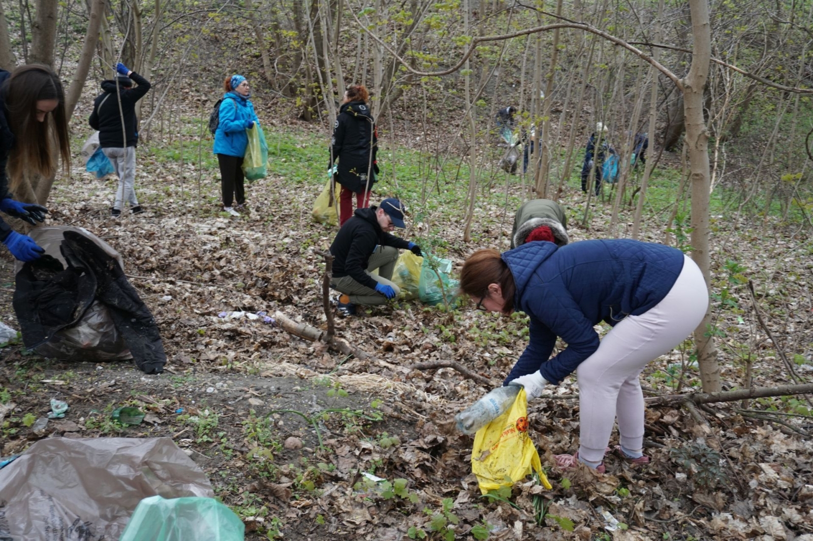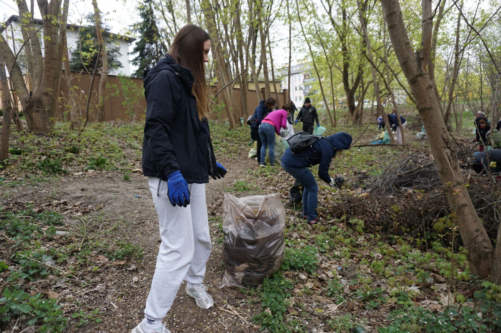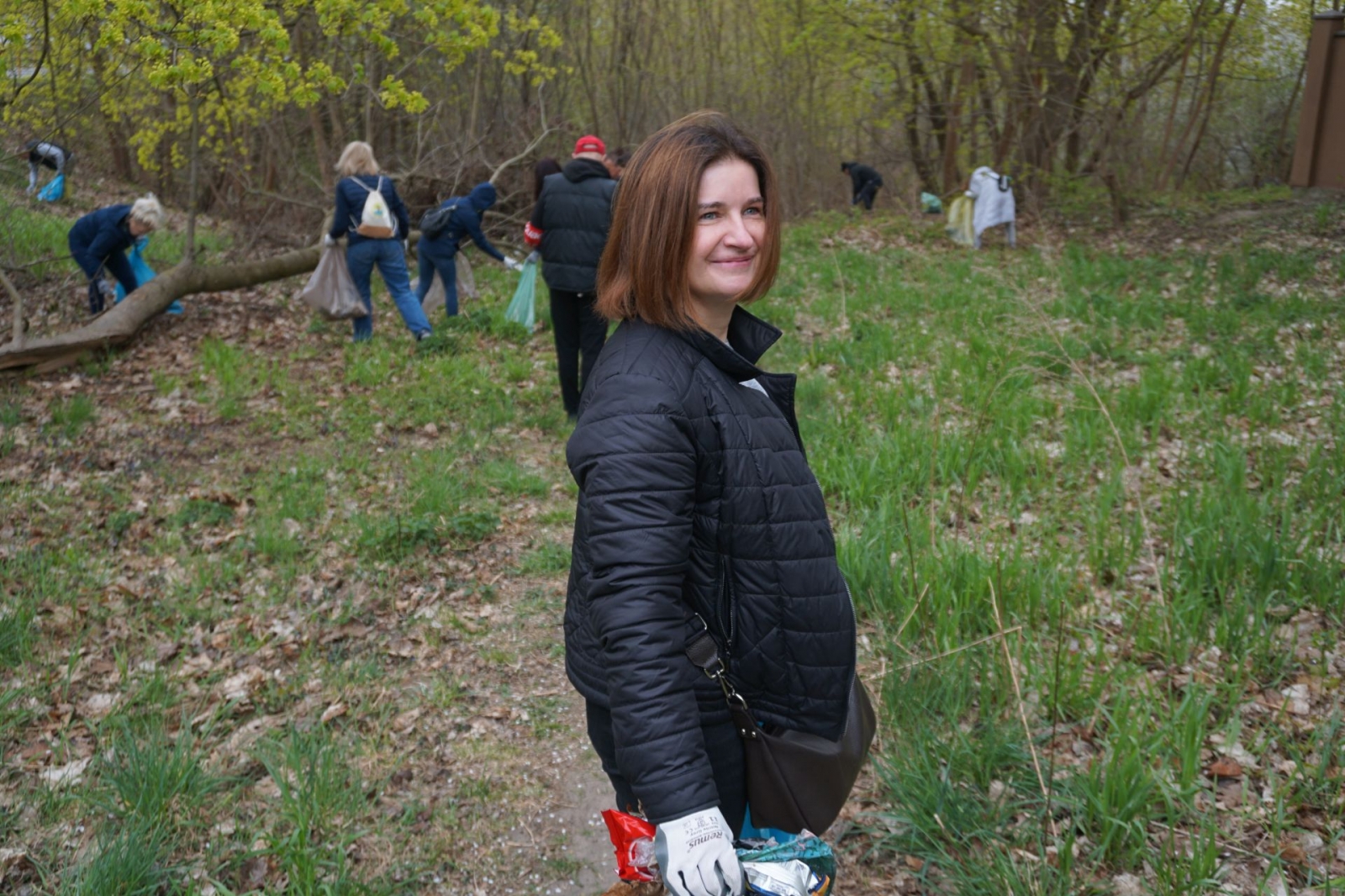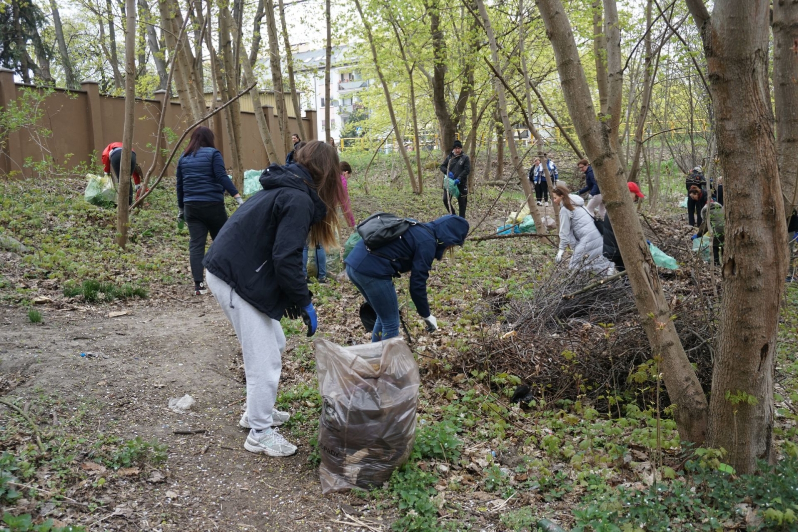 Po rozdaniu worków ekipa sprzątająca ruszyła na drugą stronę ulicy, a następnie – w lasek okalający bagienko. Już początek trasy uświadomił wszystkim, jak wiele śmieci tu zalega (i to najróżniejszego pochodzenia). Co budujące – w akcji brały udział także dzieci.