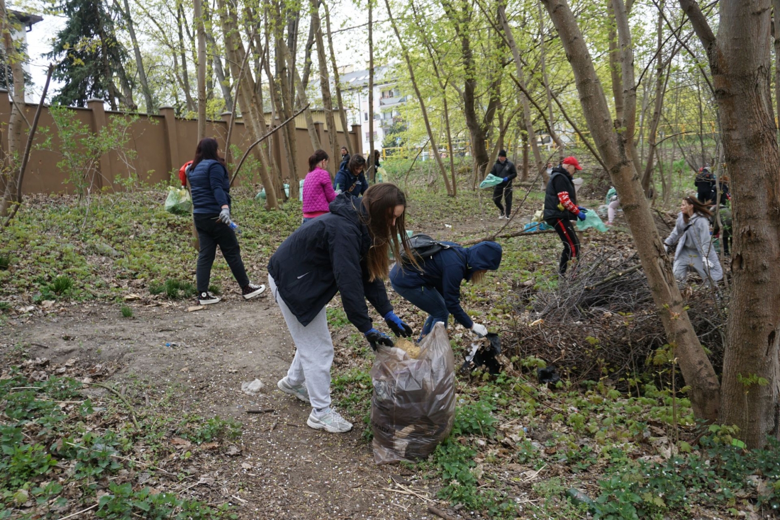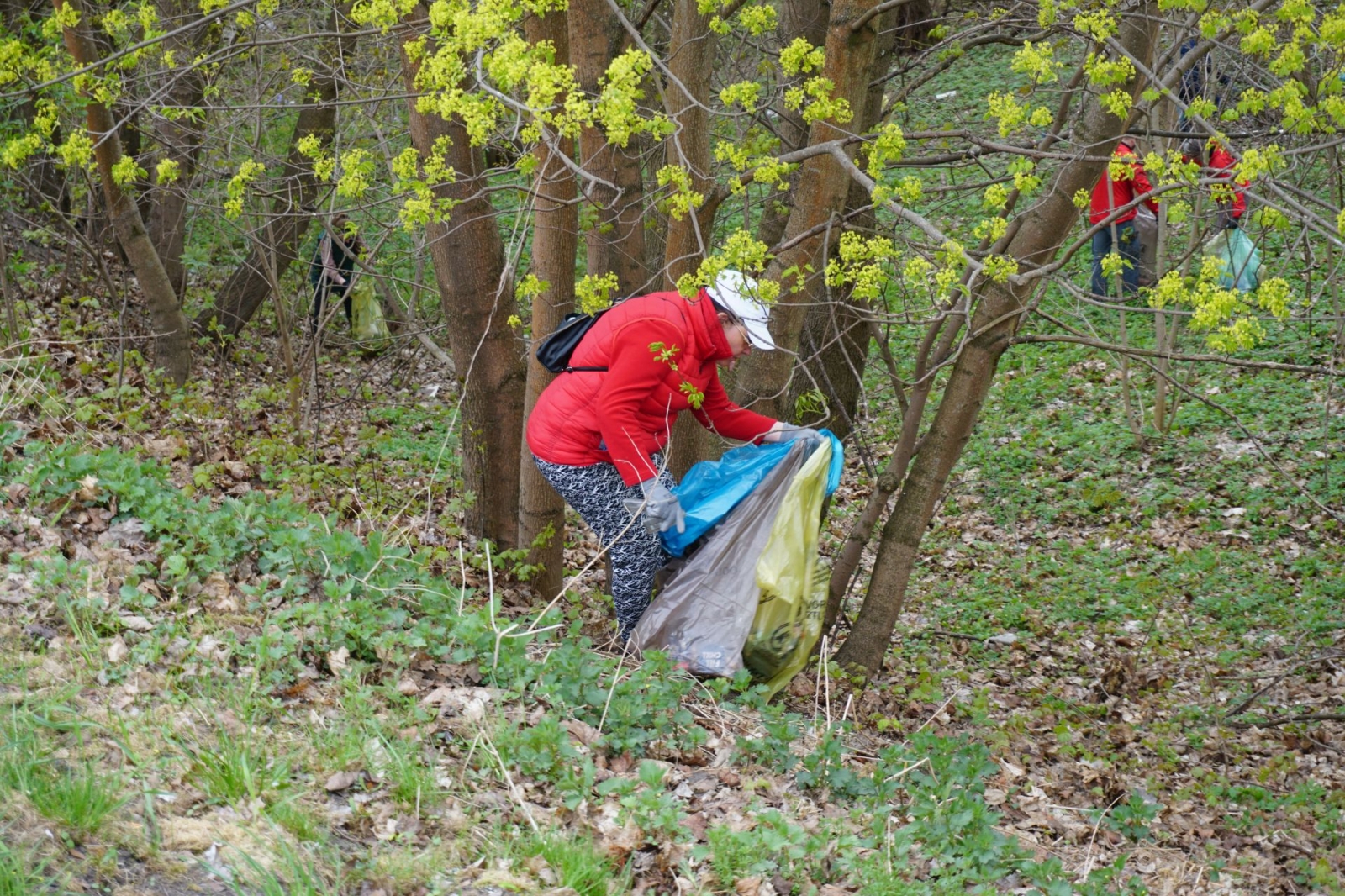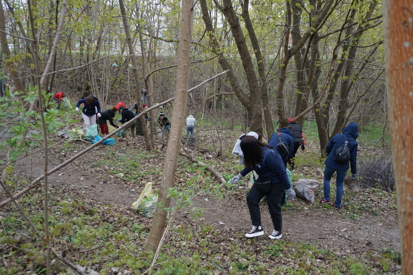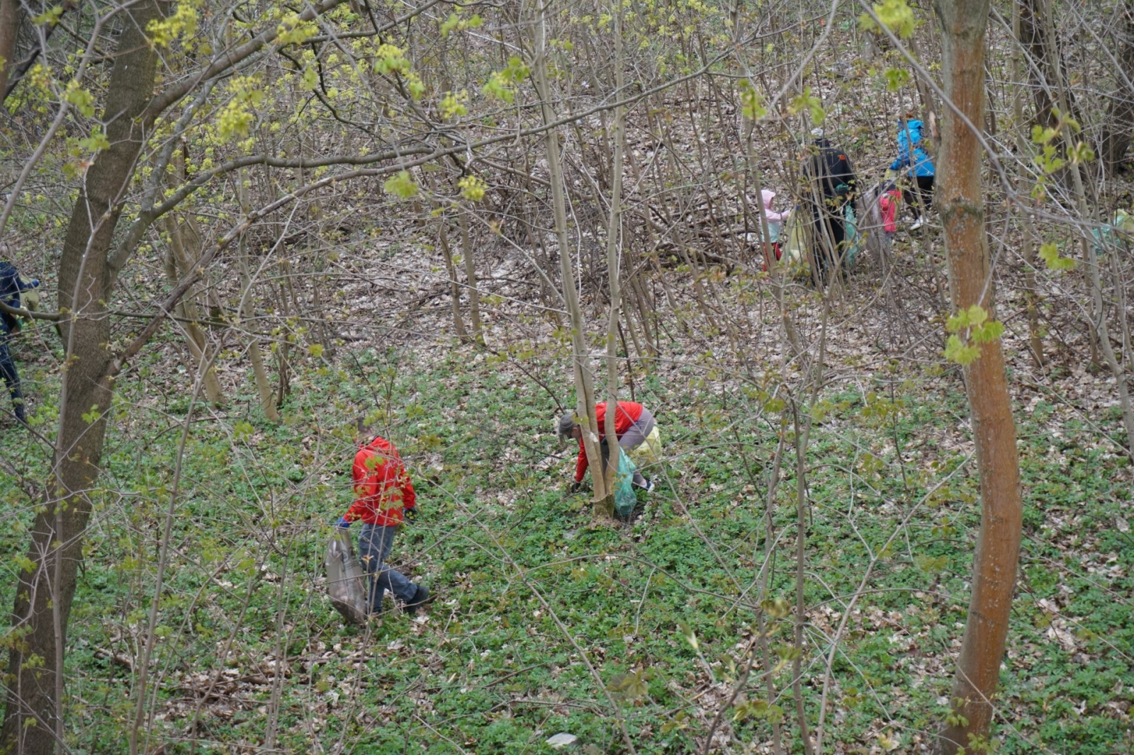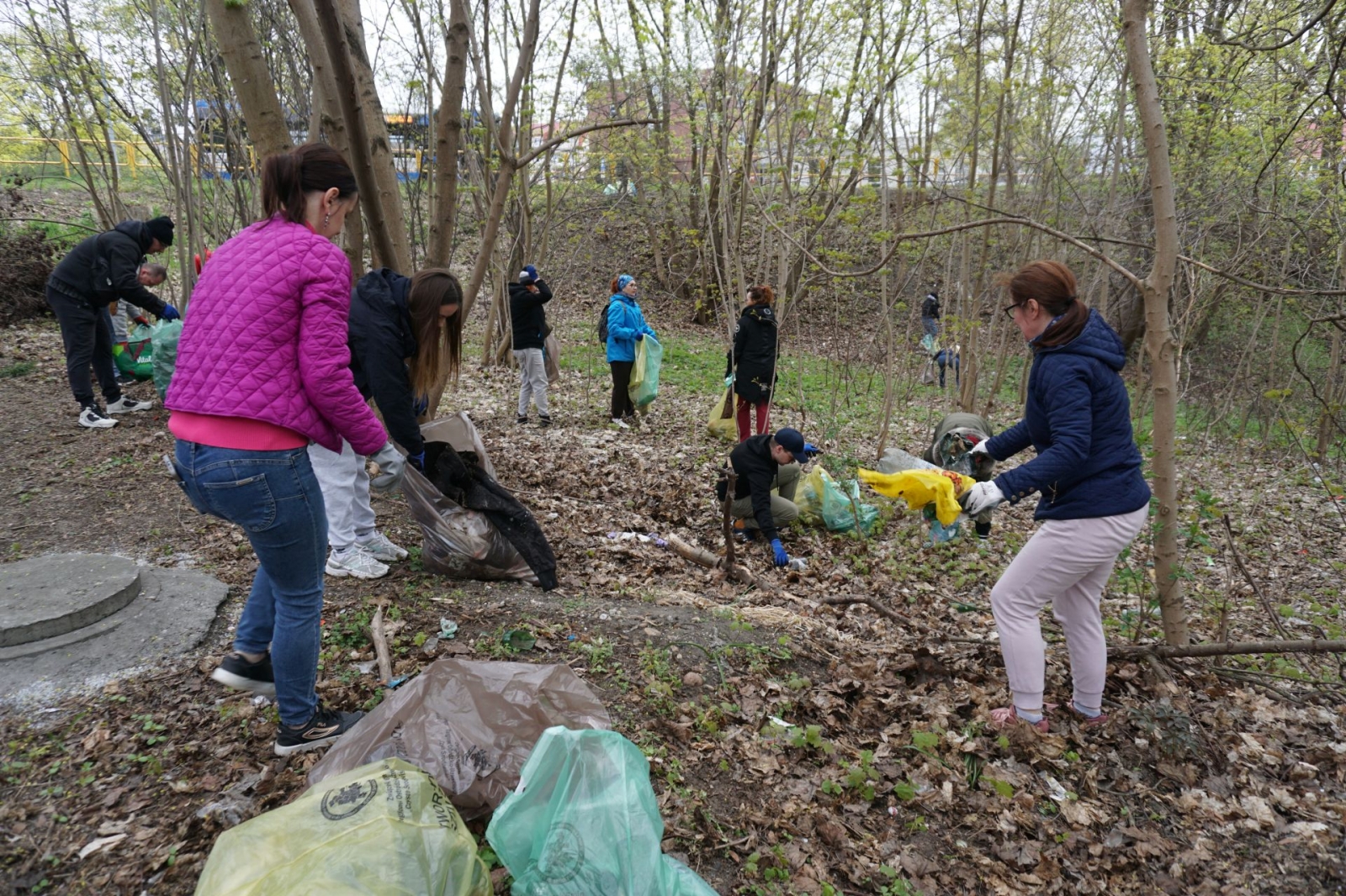 Po rozdaniu worków ekipa sprzątająca ruszyła na drugą stronę ulicy, a następnie – w lasek okalający bagienko. Już początek trasy uświadomił wszystkim, jak wiele śmieci tu zalega (i to najróżniejszego pochodzenia). Co budujące – w akcji brały udział także dzieci.