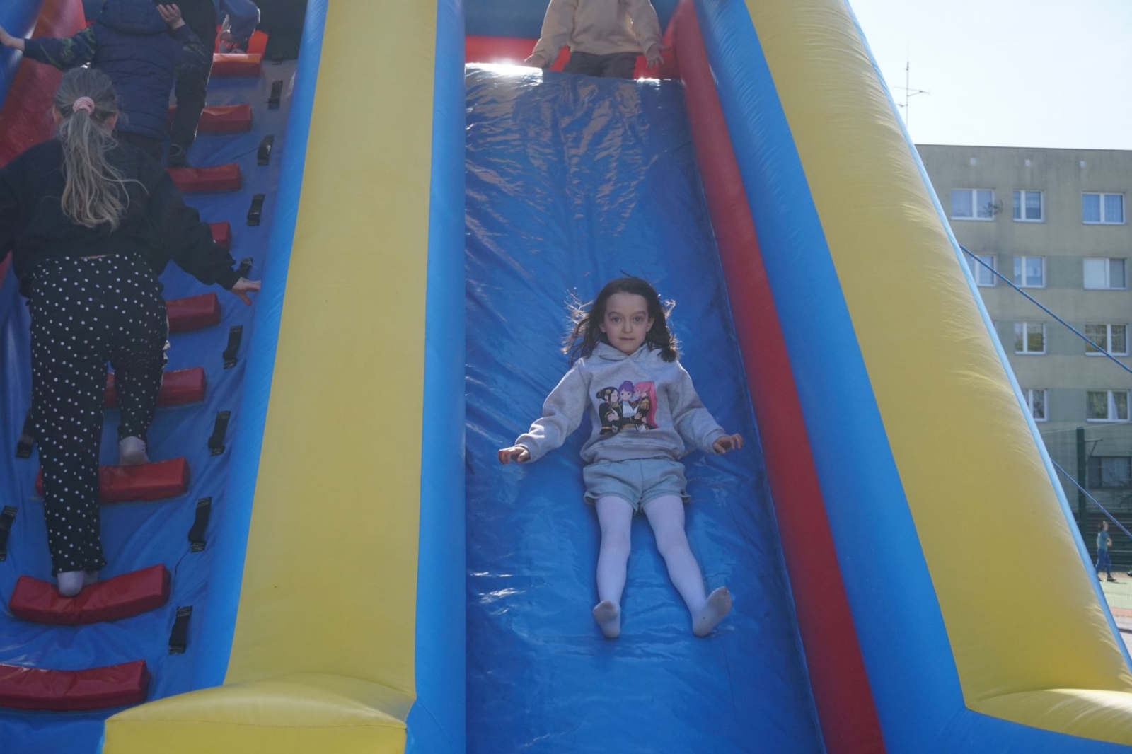 Iławska „Dwójka” ma szczęście do pogody – wiatr może dziś trochę przeszkadza, zrzuca ze stołów kartki czy opakowania z pop-cornem, jednak generalnie jest ładnie, słonecznie, a co najważniejsze: radośnie.