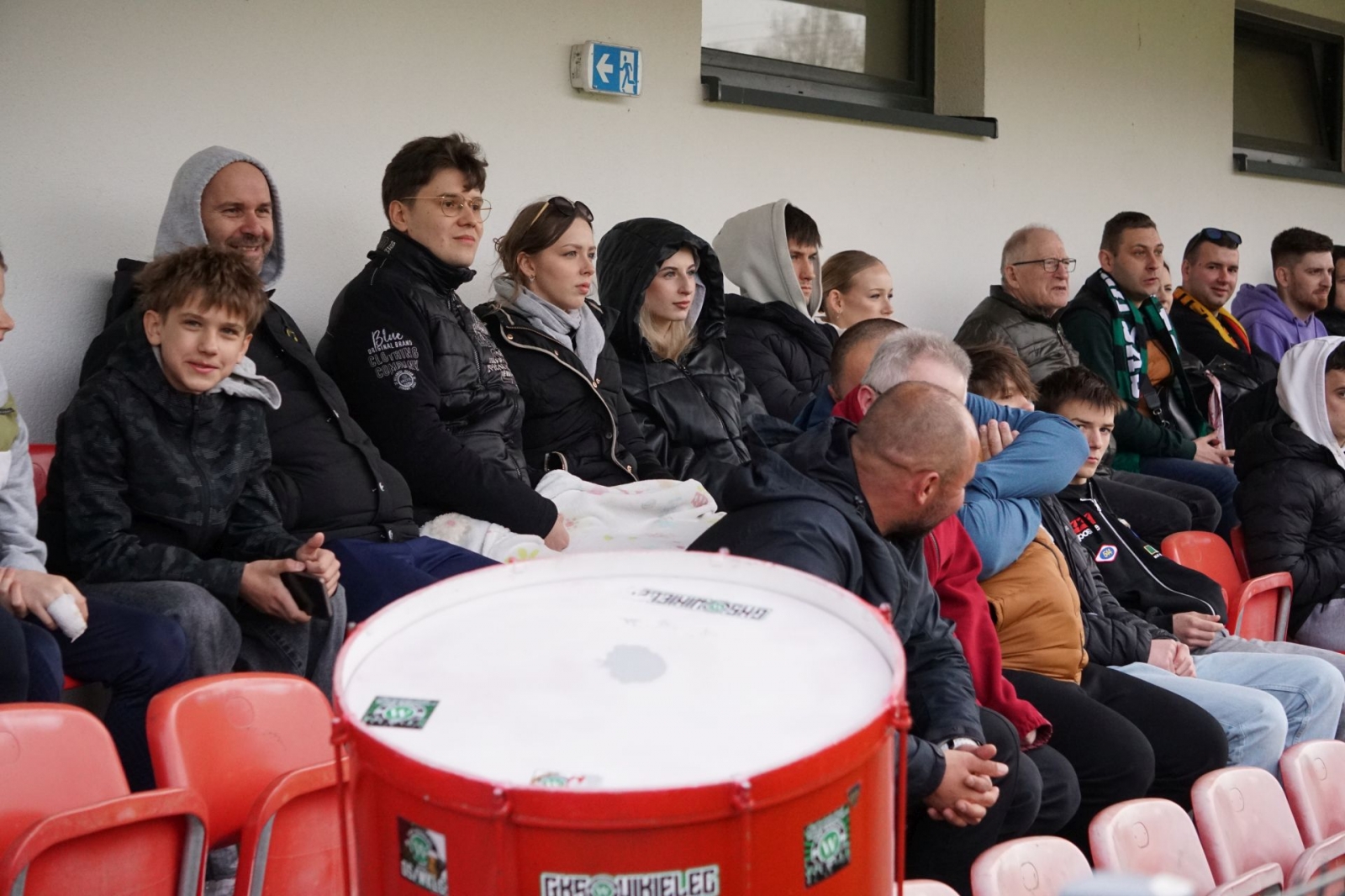 Frekwencja na dzisiejszym meczu była bardzo daleka od choćby poprawnej, ale może niektórych kibiców wystraszył silnie wiejący wiatr? Warte odnotowania jest to, że do Wikielca przyjechała dziś zorganizowana grupa fanów ŁKS-u. W 22 minucie nie mieli oni jednak powodów do zadowolenia.