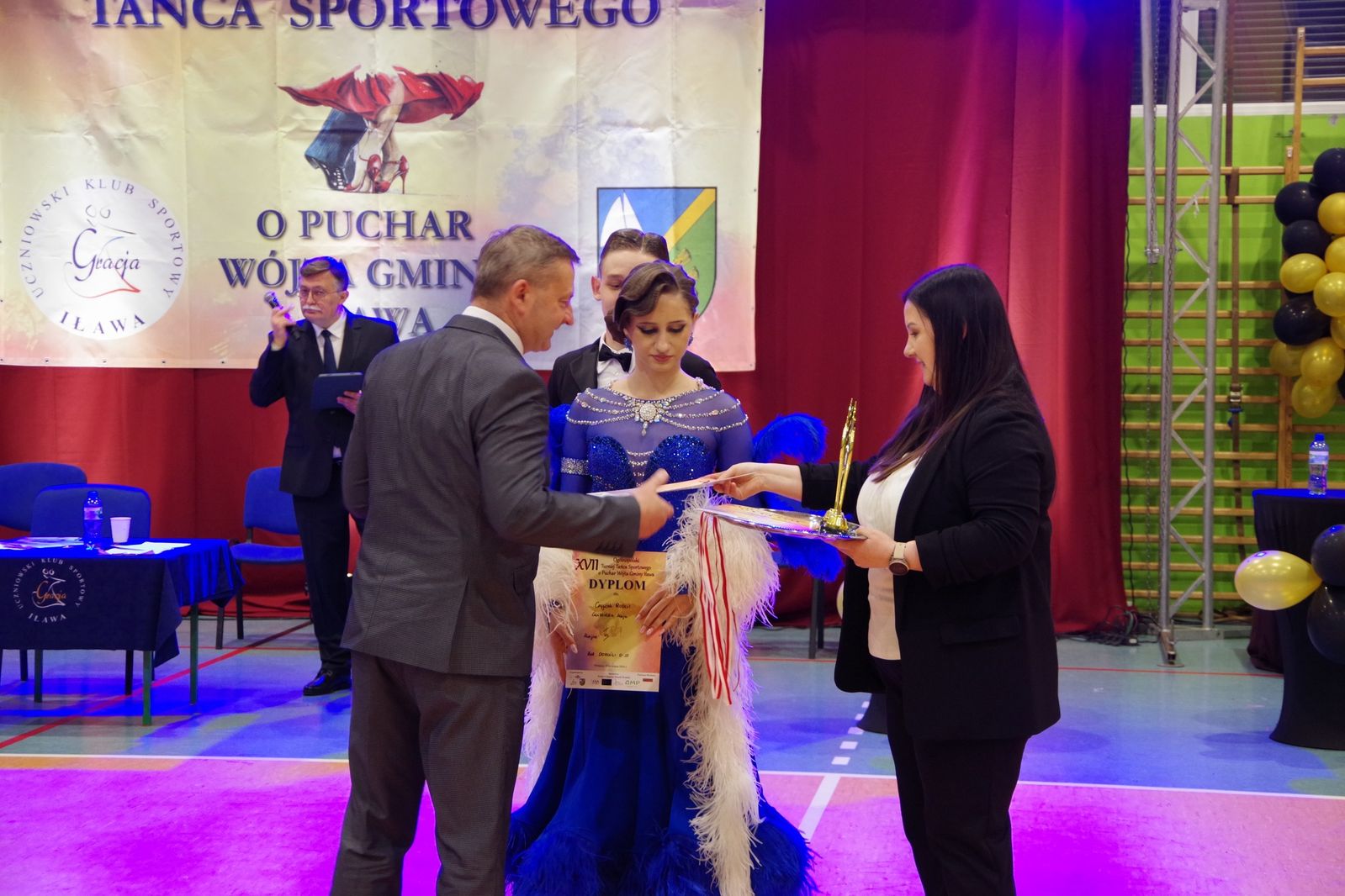 Na zakończenie turnieju puchary i pamiątkowe dyplomy wręczył Zastępca Wójta Gminy Iława Andrzej Brach. Organizatorem turnieju był Uczniowski Klub Sportowy „Gracja” z Iławy, we współpracy z Warmińsko-Mazurskim Związkiem Sportu Tanecznego, Gminnym Ośrodkiem Kultury w Lasecznie oraz Gminą Iława.