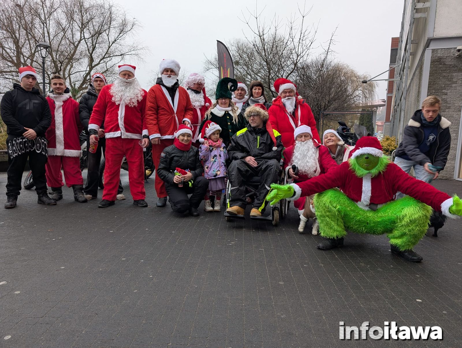 Iławscy MotoMikołaje z paką dla zwierzaka i pomocą dla zaprzyjaźnionego motocyklisty Jarka.