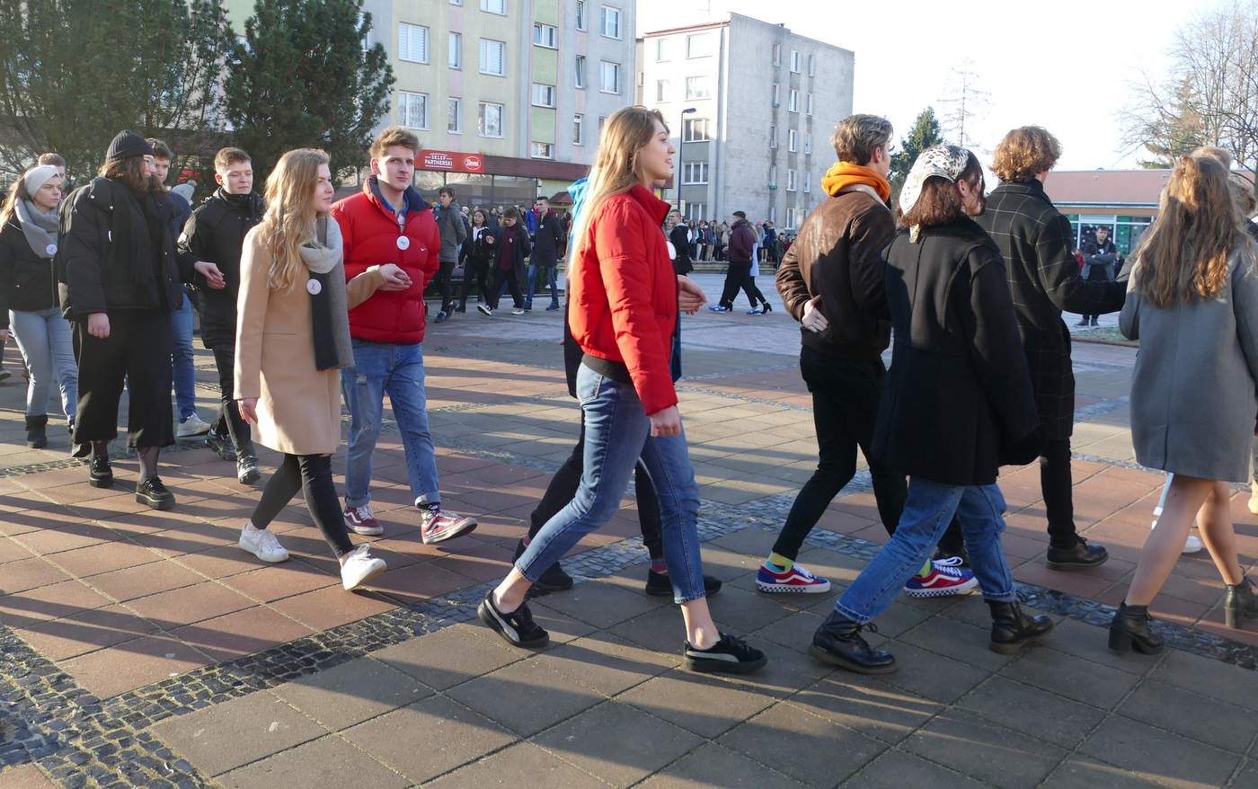 "Śnieżny polonez" w wykonaniu iławskich maturzystów.