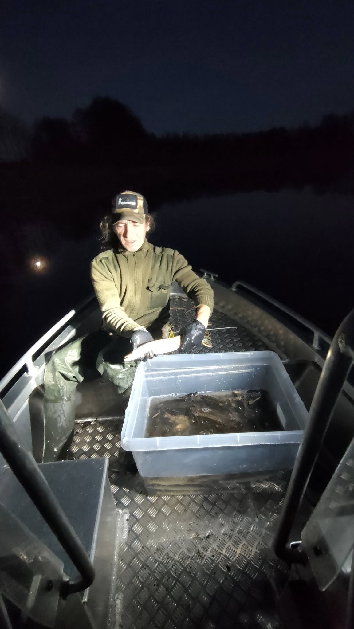 Zarybianie jez. Wielkie Partęczyny i Skarlińskie przez Koło PZW Nowe Miasto Lub. (5.11.2025). Fot. PZW NML