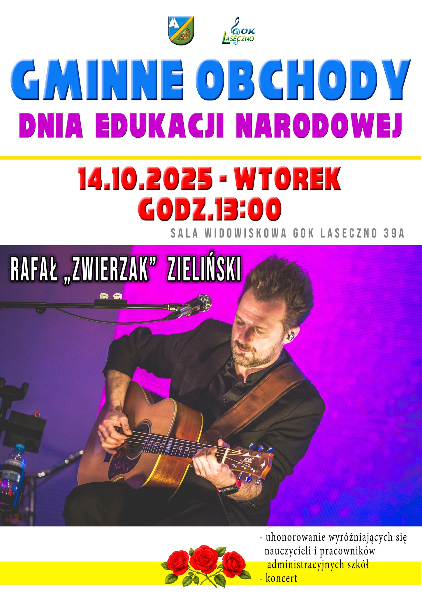 We wtorek, 14 października 2025 roku, w sali widowiskowej Gminnego Ośrodka Kultury w Lasecznie (ul. Laseczno 39A) odbędą się Gminne Obchody Dnia Edukacji Narodowej. Uroczystość rozpocznie się o godzinie 13:00.