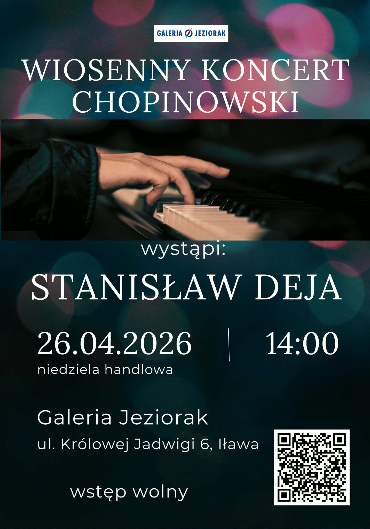Stanisław Deja koncertował m.in. ze słynnym dyrygentem Krzysztofem Pendereckim - a w najbliższą niedzielę da koncert w Galerii Jeziorak w Iławie. Zresztą nie pierwszy raz, bo taki Wiosenny Koncert Chopinowski odbył się tutaj już w ubiegłym roku - i cieszył się niemałym zainteresowaniem. Wstęp na wydarzenie, które odbędzie się w niedzielę 26 kwietnia o godzinie 14:00, jest wolny.